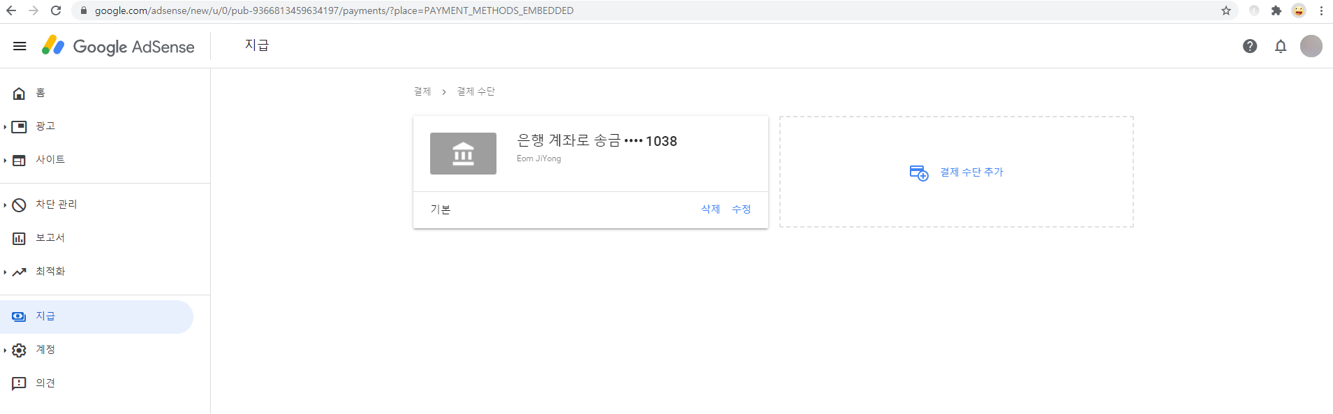 1. [결제 수단 추가] 버튼을 클릭합니다.