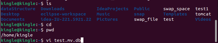 $ vi test.mv.db 명령어를 통해서 파일을 만들어주었다.
