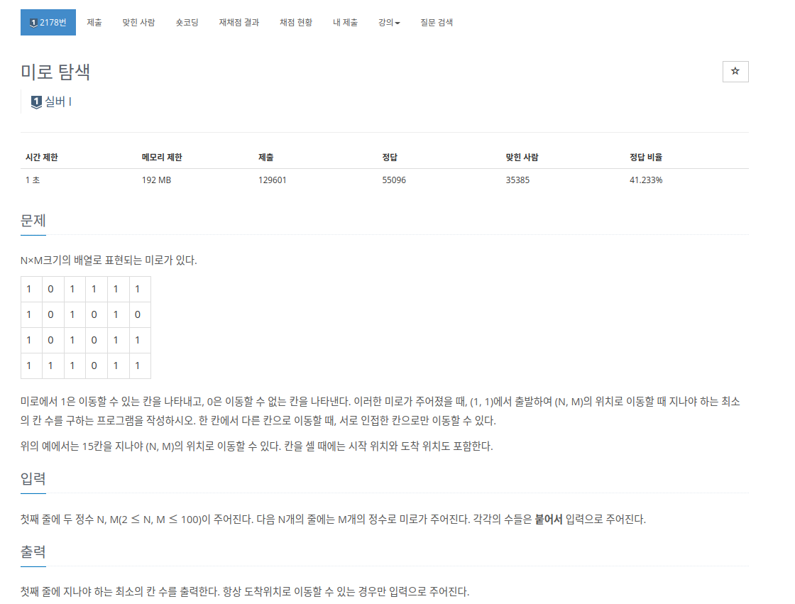 [백준] 2178 미로 탐색 (BFS) 본문