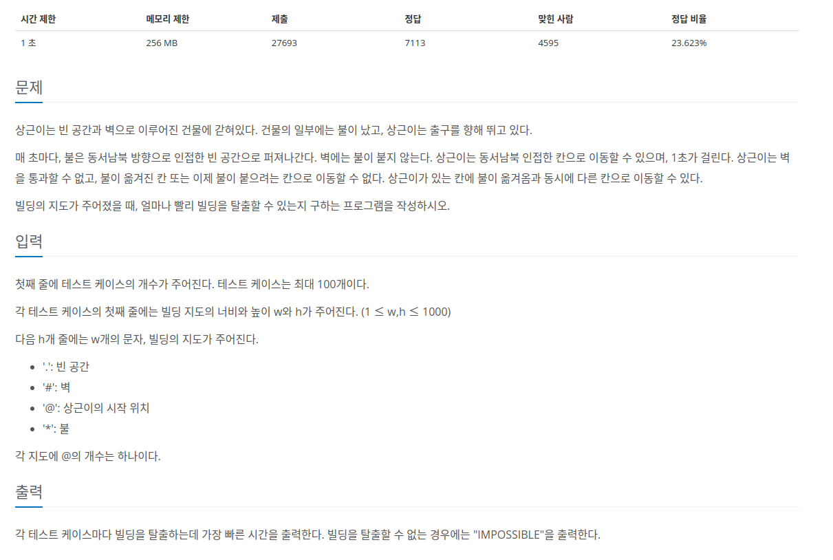 [백준] 5427 불(BFS) 본문
