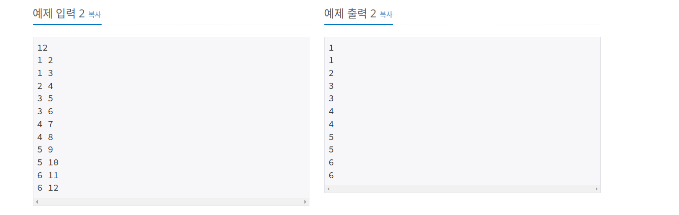 - 주어진 숫자들을 그래프로 연결했을 때에, 각 숫자마다 부모가 누구인지를 구하는 문제이다.