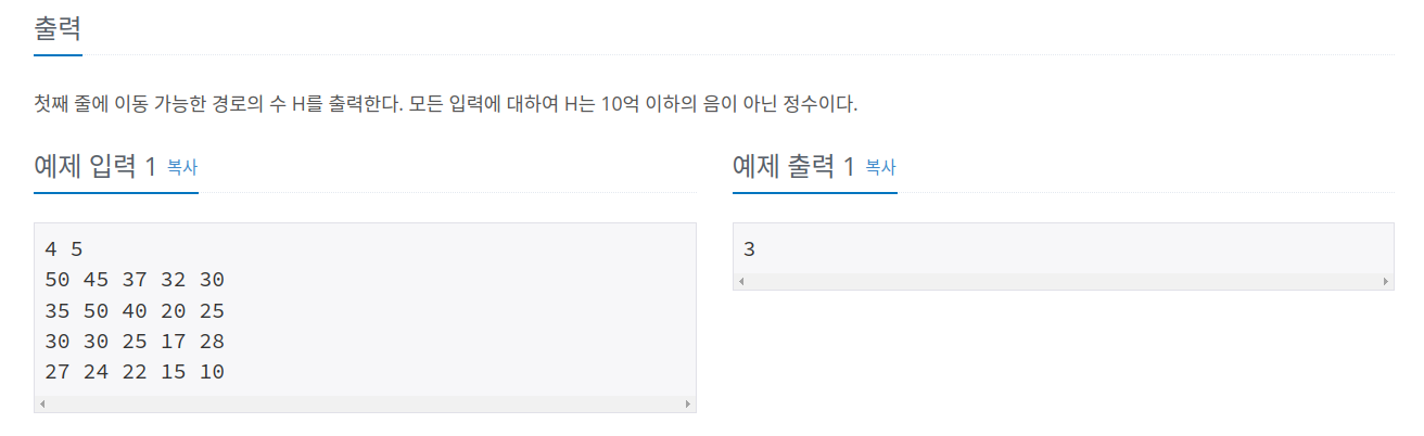 - 1 초과로 되어 있는 이유는 dfs 재귀가 끝나면서 dp[x][y]에 더해준다.
