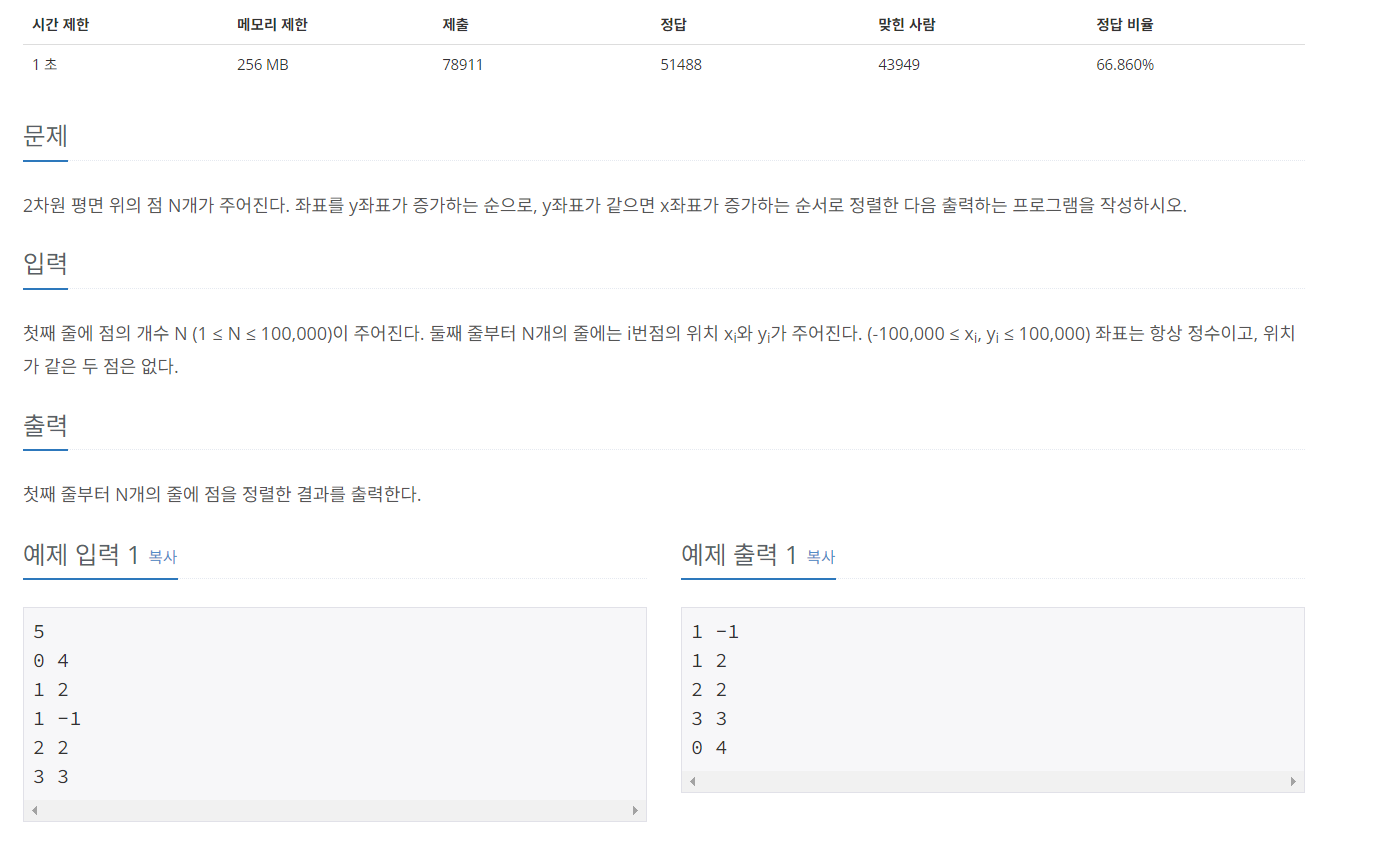 백준 11651 좌표 정렬하기 2 본문