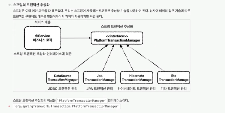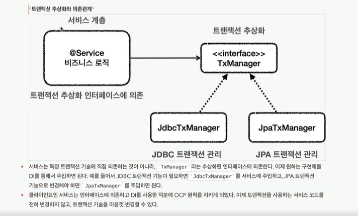 - 스프링은 서비스 계층을 순수하게 유지하면서, 지금까지 이야기한 문제들을 해결할 수 있는 다양한 방법과 기술들을 제공한다.