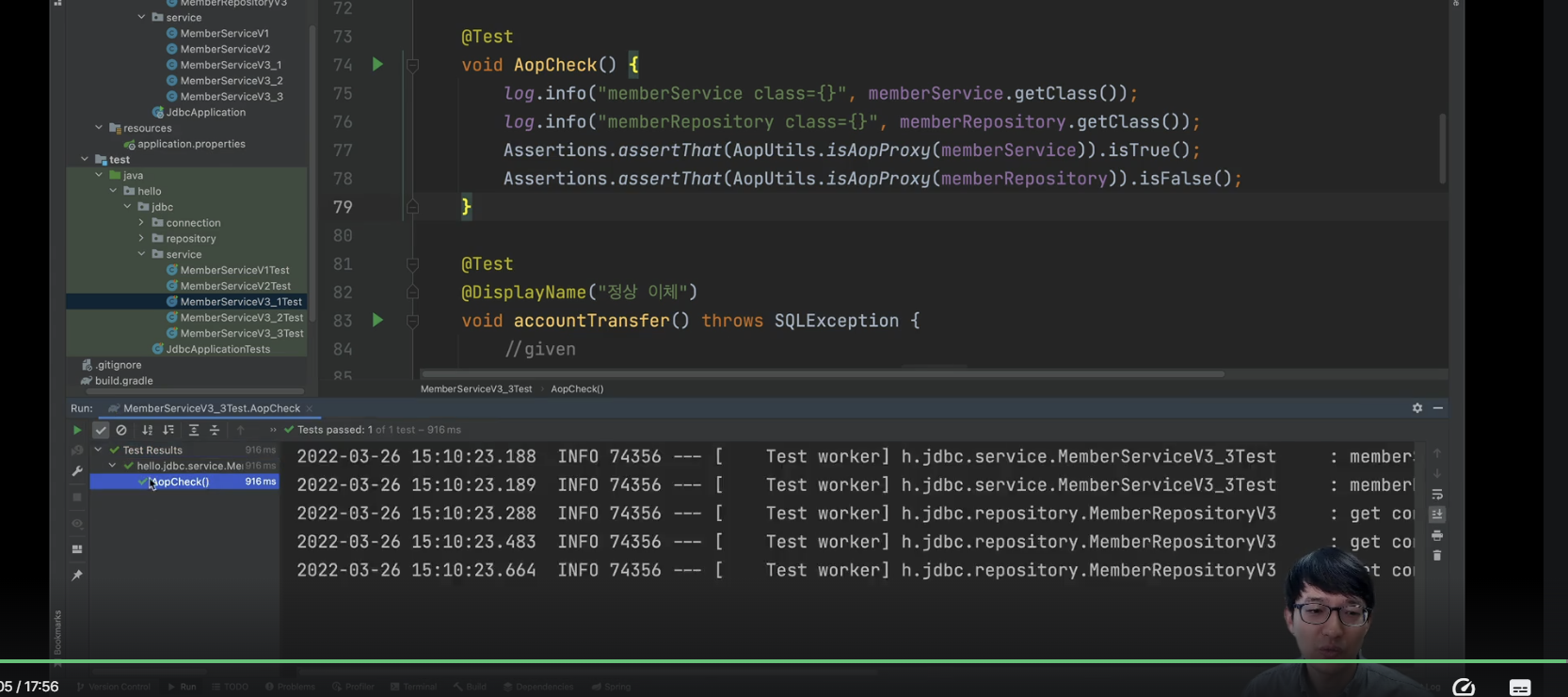 AOP인지 테스트는 AopUtils.isAopProxy()를 통해서 진행할 수 있다.