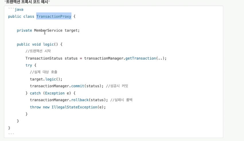 트랜잭션 프록시 코드는 아래와 같이 되어 있다.