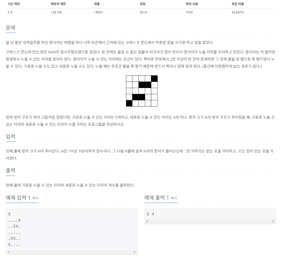 백준 1652 누울 자리를 찾아라 본문