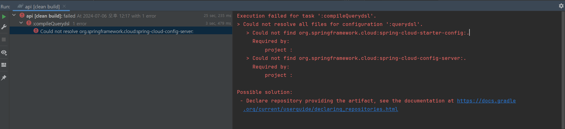 gradle build를 돌려보니 아래와 같이 에러가 났다.