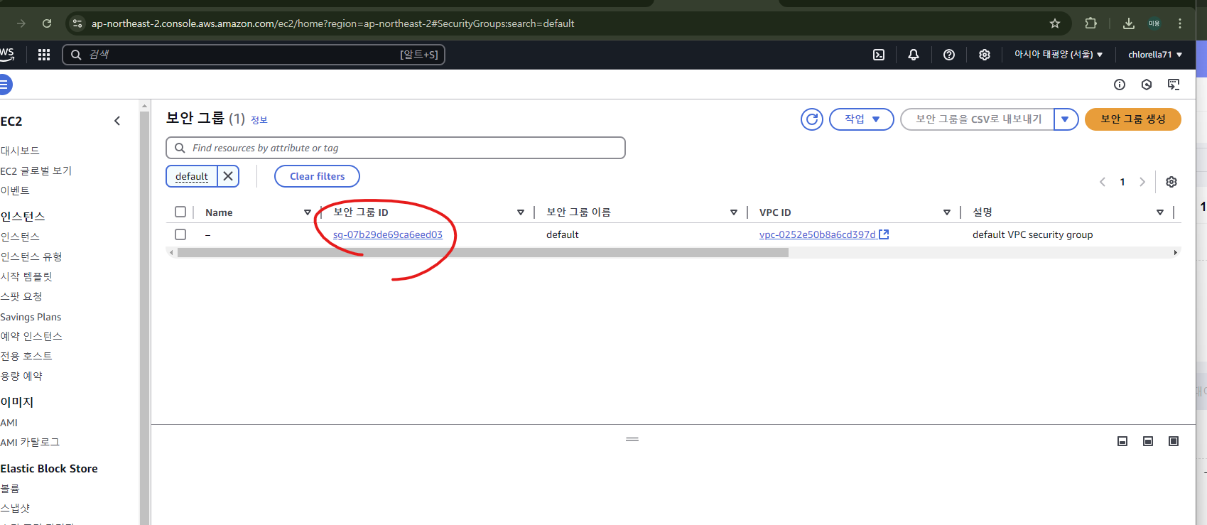 2. 보안 그룹에 있는 것 임의로 하나 선택