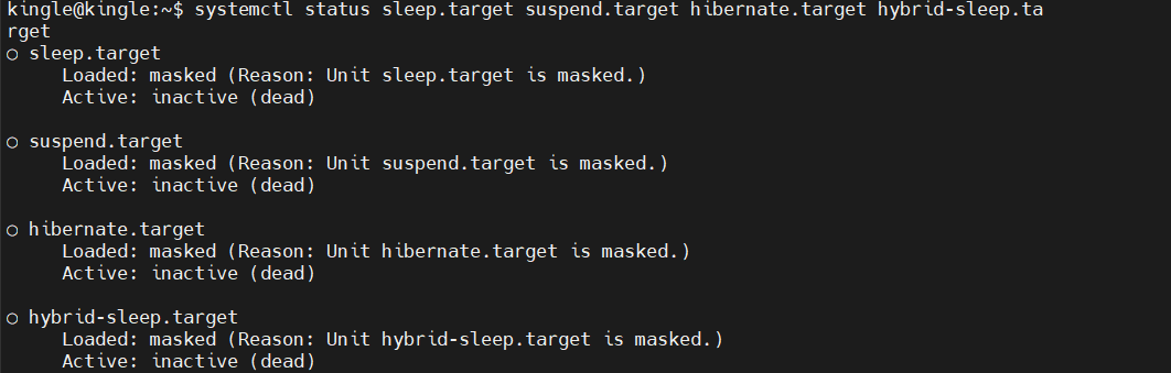 $ systemctl status sleep.target suspend.target hibernate.target hybrid-sleep.target